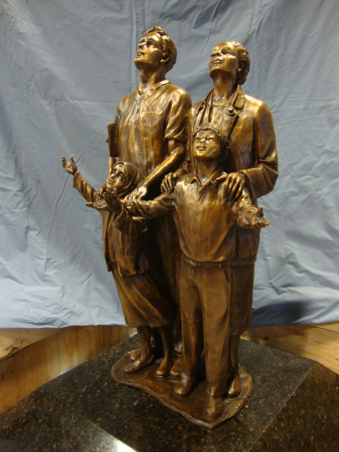 30" bronze sculpture depicting 4 people of different ethnic back rounds and religious beliefs worshiping our Creator.The sculpture will be installed in Oakwood Hospital in Dearborn, Michigan in the Spring of 2011.