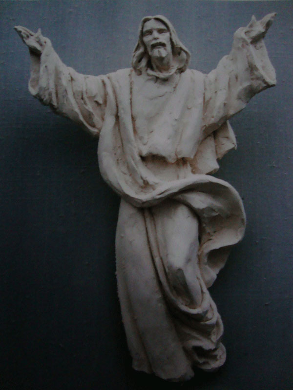 Risen Christ; 14" model for life size; fired clay; private collection