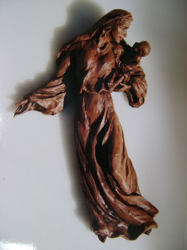 Mother and Child; 16" x 6"; fired clay with coloring; proposed model for a life size wall sculpture