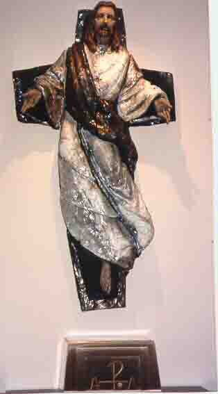 Risen Christ - Fired Clay with Glaze, 4 feet in height at a hospital chapel in Kenosha, WI