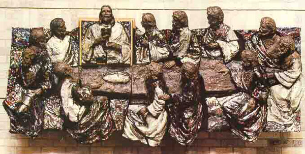 Last Supper - Fired Clay with Raku Glaze, 9 feet in width, 5 feet in height, in St. Michael the Archangel Church in Aurora, Colorado