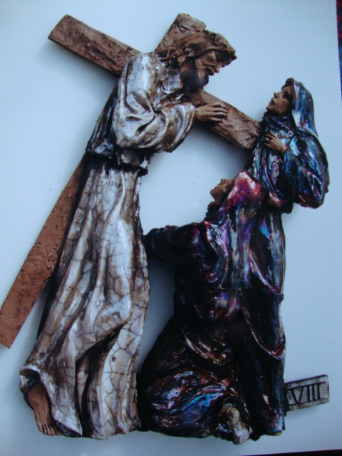 Holy Family Parish, Inverness, IL ; Stations of the Cross; 30" in height; fired clay raku glaze