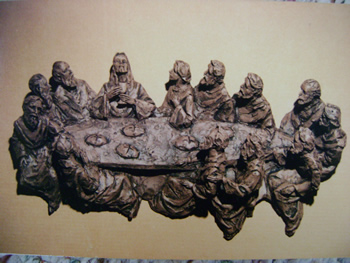 The Last Supper wall sculpture; fired clay with color applied; approximate H: 14" x W: 24" x D: 3" - privately owned