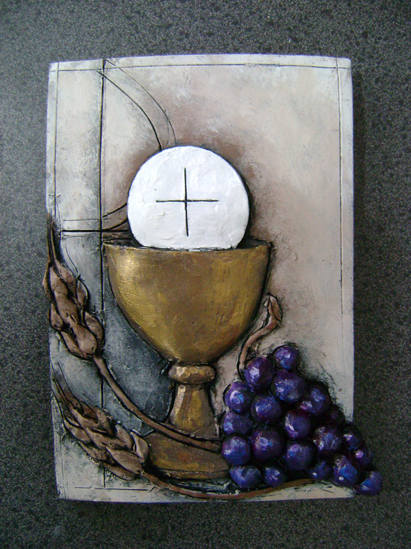 Eucharist plaque; private collection; 10" x 5"; fired clay with color applied