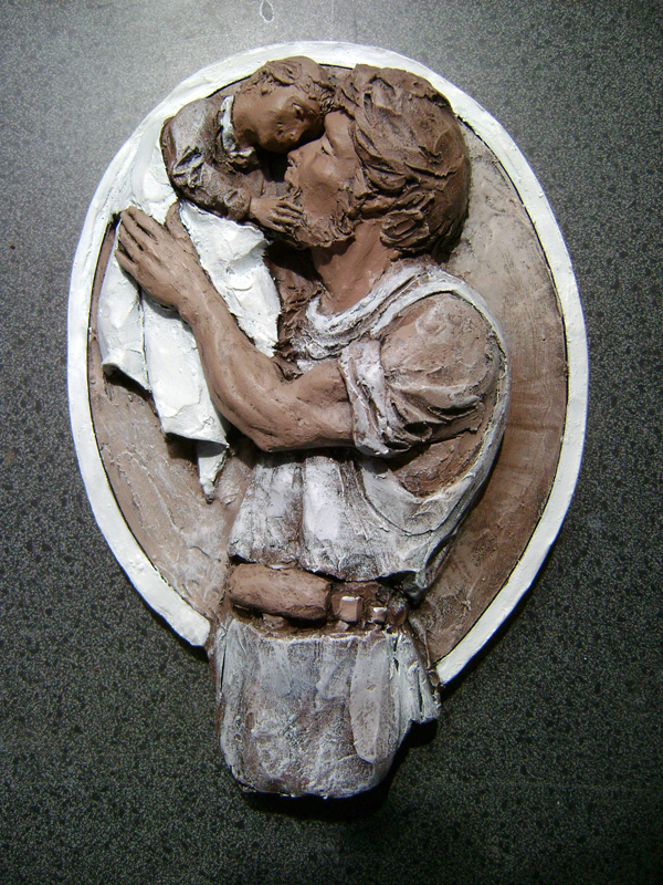 St. Joseph and the child Jesus; private collection; fired clay with color applied; 14" x 6"