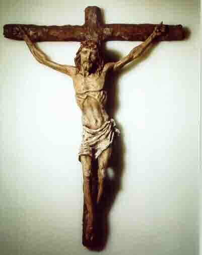 Crucified Christ - Fired Clay with Patina Coloring, 24 inches in height in Artist's collection.