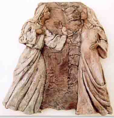 The Visitation - Fired Clay with Patina Coloring, 14 inches in height