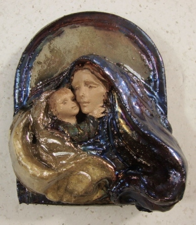 Materials: fired clay; raku glaze; mixed media